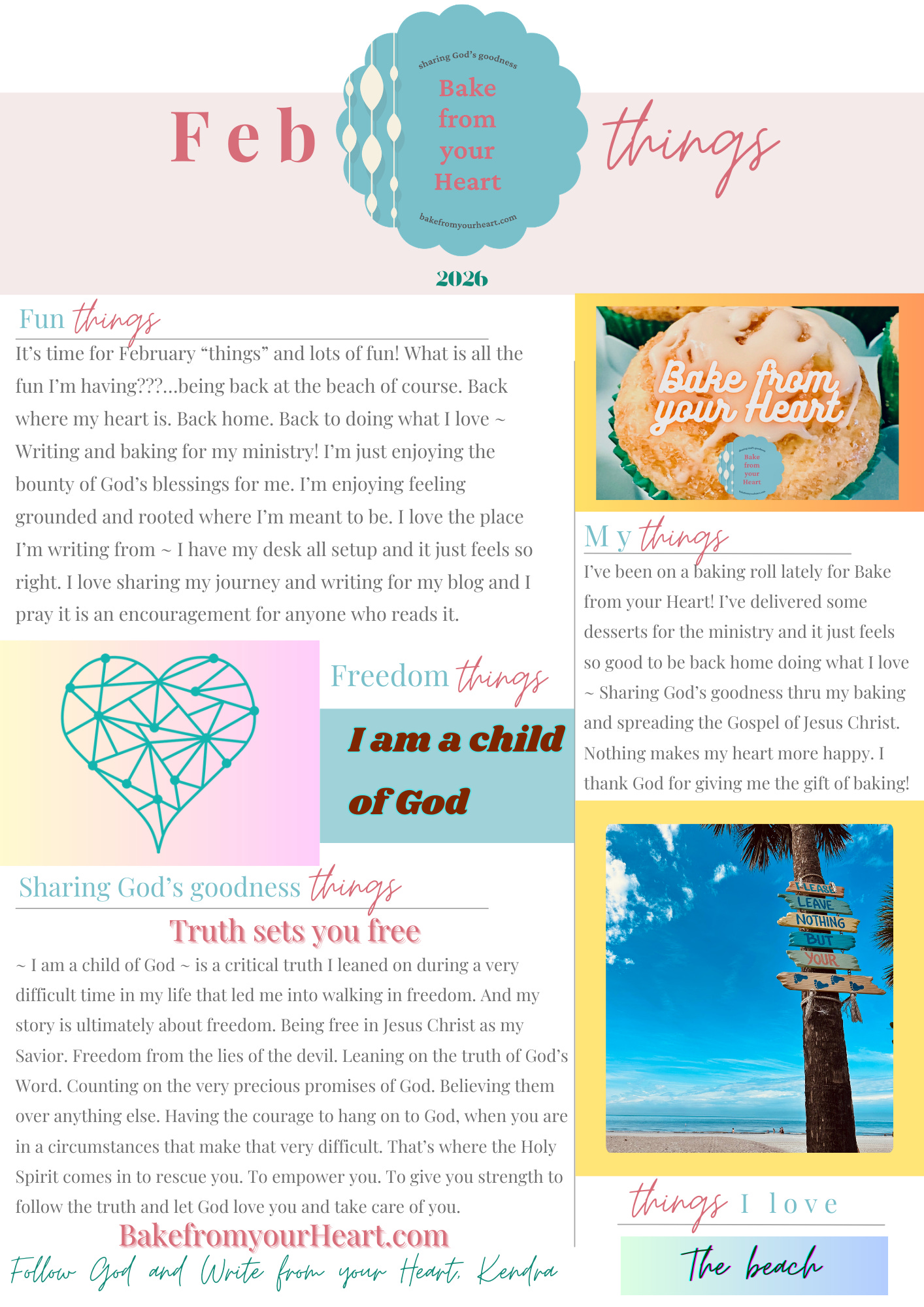 What is all the fun I’m having???…being back at the beach of course. Back where my heart is. Back home. Back to doing what I love ~ Writing and baking for my ministry! I’m just enjoying the bounty of God’s blessings for me.